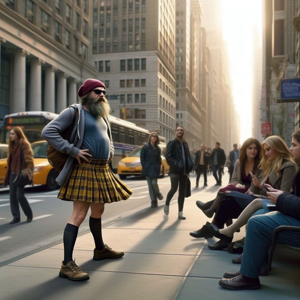AI-generated Man in a Skirt in Public